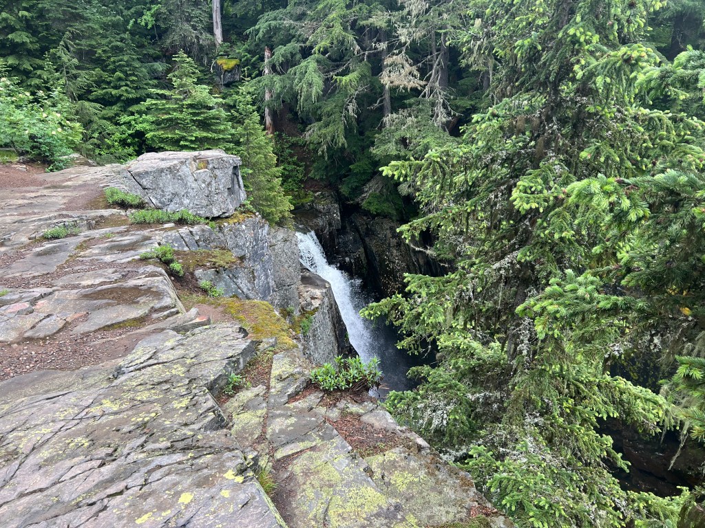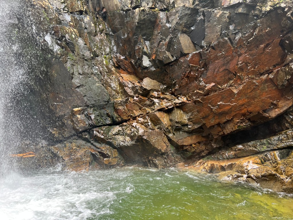 What followed was not a picture of grace. Instead, I sort of slothed, beached, pulled myself up onto and over the rock. I was glad the weather was not nice, as that may have brought others to the falls. The thought of them having to watch me, possibly with impressional children made me shutter.
