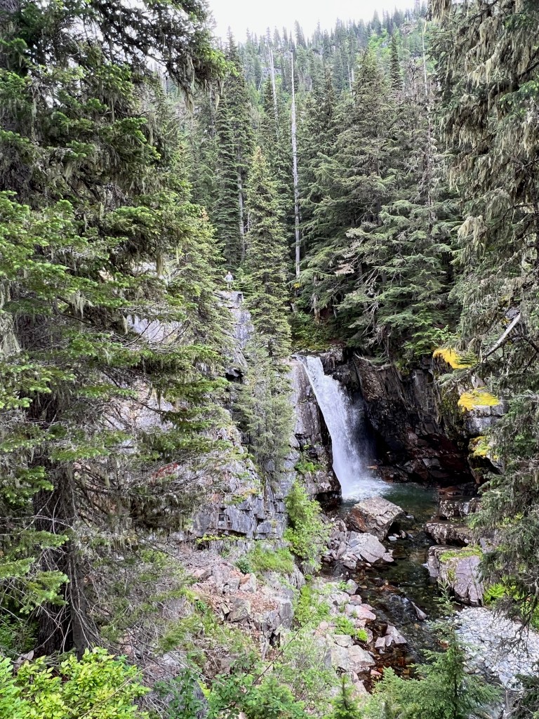 Now I was in search of the waterfall I had first heard, then spotted from a mile away. Today I was going to spend the morning and possibly the afternoon trying to reach it. It had rained overnight making the trail muddy and under brush wet.